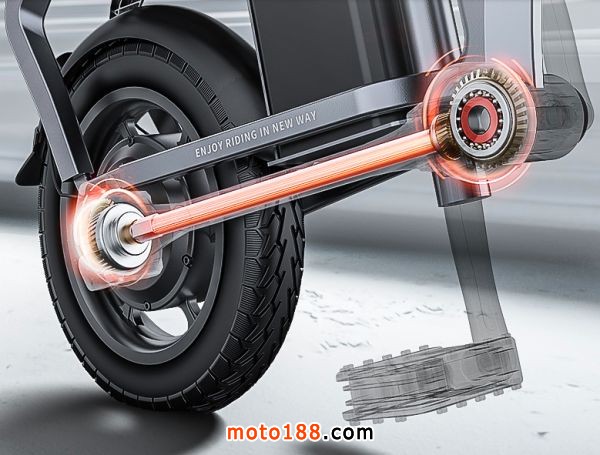 它最大的亮點在于它擺脫了傳動鏈的束縛,并采用了中軸傳動結(jié)構(gòu),從而降低了騎行過程中的阻力,節(jié)省了精力,并使騎行更加舒適。