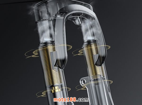 該車的前輪采用雙空氣液壓減震系統(tǒng),可提供響應(yīng)迅速的響應(yīng)和平穩(wěn)的操作。輕巧結(jié)實的車架即使道路蜿蜒曲折,也能舒適行駛。