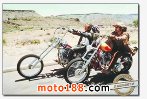 到了70年代,Chopper風格得到進一步發展。1969年的美國電影《逍遙騎士》則把這一風格從美國推向全世界,歐洲的第一家Chopper機車改裝作坊SwedishChopper就是在這一時期創立。大銀幕上的每一款摩托車都是年代象征,《逍遙騎士》里有著高高的Ape hanger式車把的機車就是六七十年代那種搖滾、自由的展現。