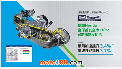作為國內首款智能踏板,五羊-本田睿御110首次把源自于Honda全球首發空冷110cc eSP清新發動機技術、Honda在中國國內摩托車行業首創的i-stop怠速熄火技術、ACG智能啟動技術、人性化智能安全配備等汽車級智能技術應用于摩托車上,開創了踏板摩托的智能新時代!