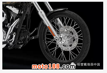 原始、堅毅、說一不二——WideGlide®車型采用了黑色鑲邊鋼制輪輞。大型21吋前輪輪輞形成了典型的改裝長車造型。而在后輪上,17吋輪圈被180毫米輪胎緊緊包裹,構成了完美比例的車尾外形。