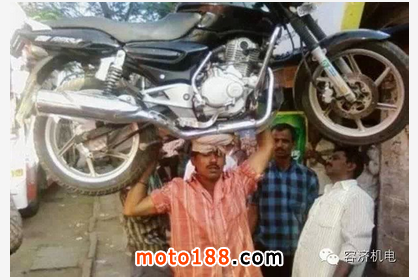 梅花香自苦寒來,上圖中這位同學(xué)經(jīng)過多年的修煉,終于可以用頭頂起摩托車了,這似乎是他畢業(yè)要回家前的考試,你猜猜下來他會(huì)做什么?在印度沒有人會(huì)用肩膀扛東西,基本上都是用頭頂?shù)模麄冋J(rèn)為頭跟脖子的力氣是最大的,印度人把牛當(dāng)做神靈,估計(jì)也都長了牛頸吧。