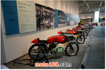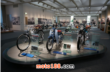 本田博物館共有三層高,第一層為主題展區域,不定時的更換展覽主題,這層還有資料室、商店、企劃室和咖啡廳。小商店可一定要逛逛哦!里面很多本田紀念品只有這里才能買到。第二層左邊是量產摩托車展示區,右邊是量產汽車展示區。第三層則是展出四輪賽車和摩托賽車。第三層附近還有一個“Mobilityland”,在哪里有很多的娛樂表演,還有歷代的本田機器人和本田自行設計的小型噴氣式飛機。