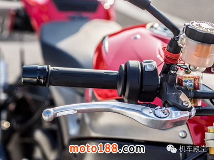 位于右邊的油門把手更選配了南天宮的行車平安護身符(要擲圣杯才能選配),加溫把手開關*(真是貼心)、動力輸出模式開關(可選擇雨天及公路和賽道模式三種,選配DTC套件更會增加隱藏的PRO RIDING MODE)、整合式電門開關(包含引擎斷電及啟動鈕),比較可惜的是原廠直推總泵不是採用與分泵相同的Brembo,就當成是替車主保留改裝樂趣吧?