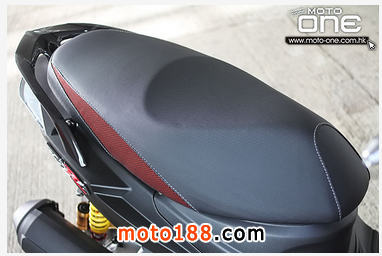 ●提升視覺效果的紅邊拉花座墊設計,可凸出車尾兩則的立體感。