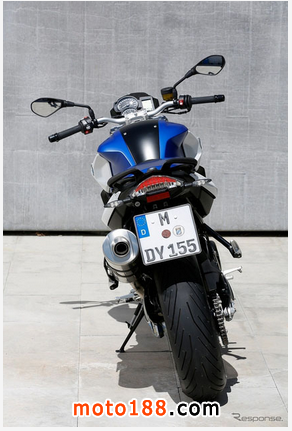 BMW發(fā)表全新改款F800R配置并雙缸798CC水冷引擎,出力90ps/8000rpm,前倒叉,鏈條在右側,排氣尾管及后碟盤在左側,異于一般擺放位置之設計?