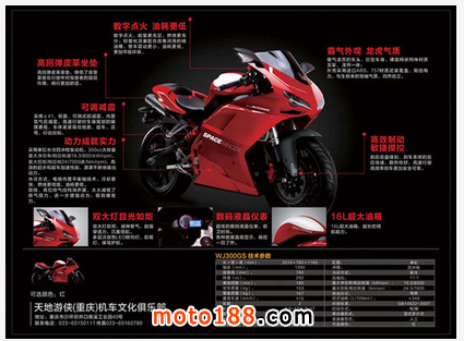 最近有幾個外國網站不約而同報導一臺型號WJ300GS的國產新車,車輛包圍上印有 SPACE RANGER,編者也到訪過制造商-望江摩托的官方網址,原來車輛的中文名字是天地游俠。為甚么外國網站如此關心這臺300cc的大包圍小跑,相信熟識歐 洲車的車迷無須解釋,原因是極像Ducati 1198的外型立即吸引了外國媒體的關注!