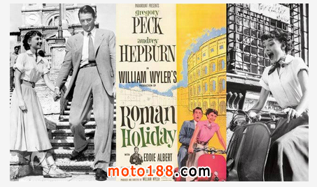 羅馬街頭,一個記者,一位公主,駕駛一輛輕便的小摩托車悠閑地穿梭在羅馬的街頭巷尾。公主穿了一襲半截式襯衫蓬蓬裙側身坐在后座,輕輕從后邊雙手環抱著一身英挺灰色西裝的他,在羅馬的每一條大街,每一個弄堂中都留下了她咯咯地歡笑聲。