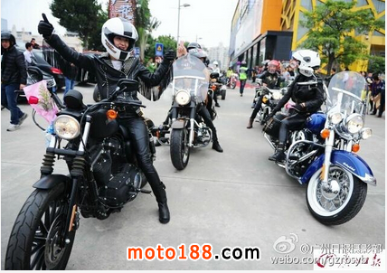 誰(shuí)說(shuō)女人只能坐在男人背后,誰(shuí)說(shuō)女人不能駕馭哈雷,只要你有足夠的自信,巾幗不讓須眉!昨日三八節(jié),在番禺大石,一群女性相約騎著超霸氣的哈雷兜風(fēng),過(guò)一個(gè)不一樣的三八節(jié)。圖為騎著哈雷的女性們英姿颯爽,帥氣十足。