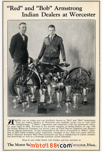 Bob Armstrong是一位天才型車手,在很小年紀的時候就體現(xiàn)出對摩托車的強大駕馭能力,19歲時贏得了全國業(yè)余hillclimb冠軍后勵志成為專業(yè)車手。1930年賽季開始后,Bob Armstrong贏得了文索基特比賽與羅得島比賽兩項HillClimb冠軍。不幸的是在剛剛開始的第一年職業(yè)比賽生涯后,21歲時Bob Armstrong因劃船溺水意外離世。