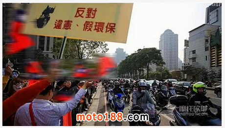 圖為2014年臺(tái)灣省119反禁摩游行,近3000輛機(jī)車?yán)@行臺(tái)中市府