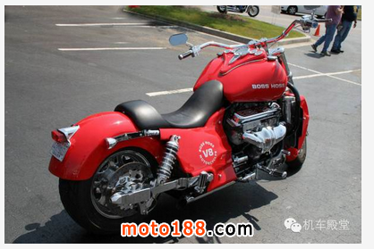 BOSSHOSS 是由美國肯塔基的經銷商開發,在2006年推出的一款客戶定制車,價格169000美金。使用道奇VIPER V10發動機,以前道奇有一款4輪的摩托車戰斧用的就是這個引擎。安裝在BOSSHOSS新開發的摩托車上后有4個檔位,功率580P,630牛/米扭矩。美國國內和海外市場只能通過預定購買,需要繳納50%定金,然后等待一個月。