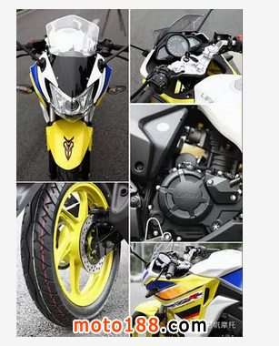 KPR賽道貼花版選用了摩托車配色中最吸引、最醒目的熒光黃作為整車的主調,運動化的輪轂快速為整車提升視覺效果。活潑艷麗的黃色配上安靜且內向的藍色,沉穩而不失科技感,同時運用了大片的白色作為過渡色,讓整車在視覺上顯得輕盈而充滿運動感。