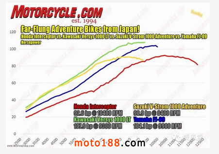 美評(píng)將日本制造的四款中量級(jí)別的越野拉力摩托車放在一起比較還是不多見的;Honda Interceptor,Kawasaki Versys 1000LT,Suzuki V-Storm 1000 ADV 和 Yamaha FJ-09。四大摩托車制造商,享有盛名的日系品牌,一一亮相。