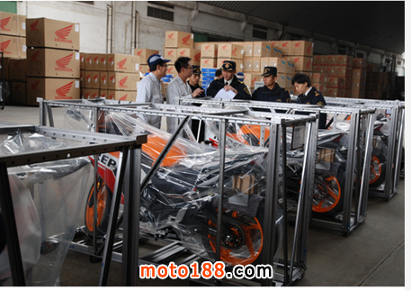 近日,在五羊-本田摩托(廣州)有限公司(下稱五羊本田)特設的海關外驗倉庫內,832輛進口大排量摩托車CBR300整齊碼放著等待查驗,這批價值人民幣三千余萬元的高端摩托車。即將通過增城口岸首次登陸中國。