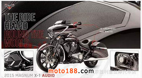 2015款勝利美國(guó)官網(wǎng)放出新款車型MAGNUM后,配套2015款勝利改裝配件同步發(fā)售,較2014款配件手冊(cè)相比新版改裝手冊(cè)涵蓋改裝類別更多,音響類改裝配件尤為突出。針對(duì)摩托車市場(chǎng)需求,勝利大熱車型MAGNUM推出"MAGNUM X-1",高規(guī)格音響系統(tǒng)升級(jí),配備10枚揚(yáng)聲器支持藍(lán)牙播放功能。