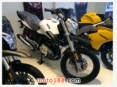 這部 ETX150 并沒有出現在廠方于歐洲市場的銷售網,其使用一副風冷四沖程單汽缸兩汽閥的發動機,Keihin 的化油器,波浪形碟式的前制動、17 英寸直徑的鋼線式車輪,車身采用了街道越野的造型風格。在其中一個陳列室看到的部分展示車,還貼有中國國家商檢局的一些特有標簽,再參考其發動機的外觀,完全不排除是比亞喬集團(艾普利亞的母公司)在中國代工生產的產品。這款 ETX150 在當地市場的公布零售價是 2,250 美元(稅后價格)。當地的摩托車進口稅綜合稅率約為 50%,估計除稅的裸車價格約為 1,400 美元左右、折合人民幣約 8,800 元。