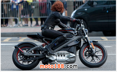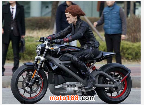 在拍攝時,“黑寡婦”正坐在一輛摩托車上飛速行駛,看起來像是哈雷車款,除了油箱上明顯的Harley Davidson字樣之外,以及哈雷車系使用的卡鉗樣式,表明了這就是一輛哈雷機車。