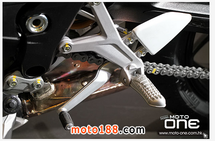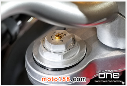 ●前掣動是雙320mm浮動碟配Brembo放射式四活塞卡鉗,一對擁有全調校的MARZOCCHI 43mm倒立前叉。