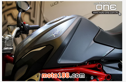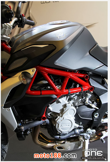 其次,2015 MV Agusta BRUTALE 800 ABS 深灰與白色閃粉底的新色抵港(紅色快將抵港),三色的車身鋼管車架均改用搶眼的紅色,并新增了油缸與座位間一片保護膠。至於車身設計、引擎及裝備均與2014款相同。