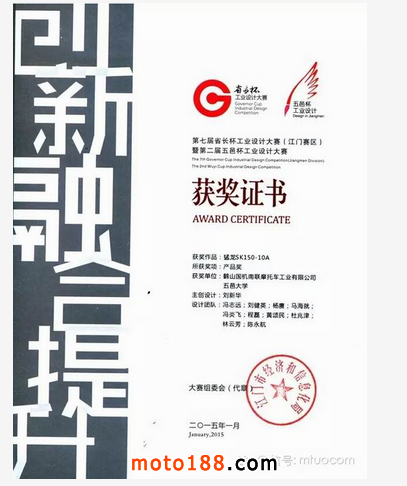猛龍SK150-10A憑借著其高標準的工藝造型及獨特的個性設計與創新受到評委們的青睞,獲得了第七屆“省長杯”工業設計大賽(江門賽區)暨第二屆“五邑杯”工業設計大賽產品獎。