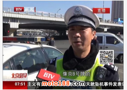 之后北京公安局公安交通管理局豐臺交通支隊方莊隊的執法警官昝玉貴同志,在接受媒體采訪時說京B號牌摩托車,不允許進入五環路內。
