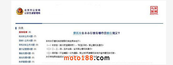 北京公安局公安交通管理局關于(北京市)摩托車的禁限行規定具體如下: