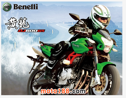 從外形看,黃龍600還是保持著Benelli一貫獨特的風格,倒立式前叉、側臥式后避震、犀利的車頭、粗壯的后搖臂、霸氣中尾部雙排氣管和剛性的編制車架及配色,使整車看起來充滿濃濃的意大利式的浪漫氣息。作為中國首款600cc直列四缸大排摩托車,黃龍600的表現沒讓人失望。雙頂置凸輪軸16氣門水冷電噴發動機,動力充足,功率可達60KW。百米加速只需4.5S,最高速度可達到218km/h。壓縮比為11.5:1,缸徑行程65×42.5,使其在8000轉就能輸出最高55Nm的扭力。這使它在中低速時也能有很好的表現。前雙后單碟剎系統使行車安全多了一份保障。作為國內第一款中大排街跑,黃龍600有絕對的優勢,擁有較大的市場份額和成熟的技術,但還需在做工和細節方面多下心思。