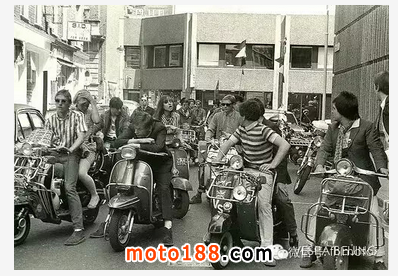 Vespa式的價值觀塑造其實與60年代興起的MOD(Modernist)文化分不開關系。二十世紀末六十年代初,世界大戰結束,英國年青人終于有機會享受生活. 然而不列顛帝國的國力已經被美國和蘇聯超越,不甘心落后成二流國家,這些年青人開始開創一種截然不同的生活方式.Mods們的核心思想簡單扼要,那就是享 受青春,和More beautiful(更加美好)。他們追求上流社會的紙醉金迷,穿著昂貴的意大利襯衫,窄身西服和奢侈的尖頭皮鞋.這些品牌很多保留到了今天但仍然價格昂貴.男孩兒們頭發梳理整潔并且帶有時髦的法國邊線,女孩兒們則模范男式發型并且朝氣蓬勃。