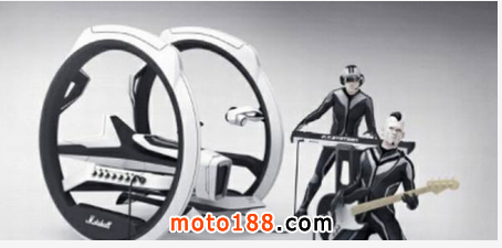 名副其實的搖滾戰(zhàn)車瑞典Umea大學設(shè)計學院的 Zhang Yuhan 為音樂發(fā)燒友專門設(shè)計了一款 Marshall 電動摩托車,兩個車輪除了行駛正常外,還被設(shè)計成兩個Marshall擴音器,你可以隨時停下來,接上鍵盤和貝斯,來場演出。