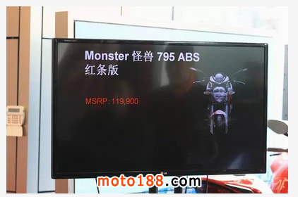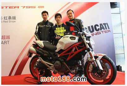 活動中,主持人介紹了杜卡迪品牌及Monster發(fā)展歷史,同時也進(jìn)行了Monster車型知識競答游戲,M795家族Red Stripe 這一新成員很特殊,在車身整體配色方面很大膽,白色車身飾以杜卡迪紅白相間條紋,前后紅色輪轂更增加了視覺沖擊力,它的座高只有770mm,803cc的引擎,最大馬力87匹,具備著相比同級別車型更加洶涌的動力輸出,目前官方指導(dǎo)價為11.99萬元。