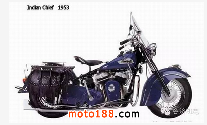 1949年隨著英國貨幣的貶值,英國進口車更加便宜。到1950年BROCKHOUSE有限公司追討債務,將印第安分離為生產、銷售兩個公司,然后分別賣給美國聯合摩托車有限公司,其英國母公司是諾頓公司。“酋長”的生產又恢復了3年多,從1950年到1953年。這些年里,“黑鷹酋長”配備了伸縮式前叉,可能是印第安所有產品的最高峰。
