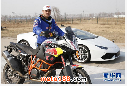 這本來是一場“不公平”的較量,KTM1190ADVR后輪驅動擁有148馬力,蘭博基尼擁有610馬力四驅七擋。越野摩托選擇非鋪裝的沙土荒草路面,蘭博基尼則被安排在機場跑道上,不過這正是跨界對抗的趣味所在。