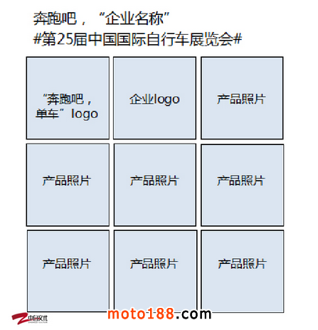 尋找XX企業(yè)的展位,拍攝8張?jiān)撜刮坏膱D片(其中一張為門頭),將8張照片和“奔跑吧,單車”活動(dòng)的背景板照片一起,上傳微信朋友圈(如下圖所示),憑借微信朋友圈內(nèi)容、一張與企業(yè)展位的合影,到創(chuàng)新示范展獲取抽獎(jiǎng)機(jī)會(huì)。