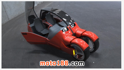 駕駛員是以駕駛賽車的姿勢坐進車里的,而摩托的頂部有著遮罩,看起來就像汽車一樣,而頂蓋可以從前向后翻起。
