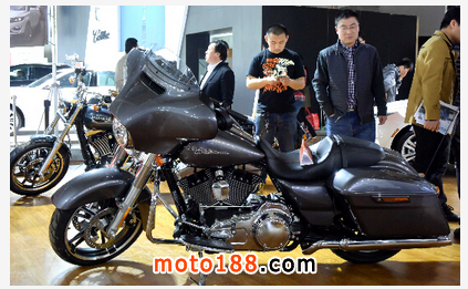 核心提示: 新華社照片,濟(jì)南,2015年4月10日,圖為哈雷戴維森大道滑翔 大排量摩托車亮相車展 4月10日,觀眾在2015齊魯春季汽車展上