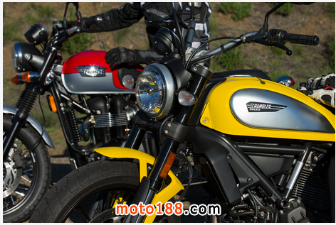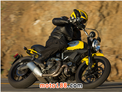 跨越車軸之間的短56.9英寸,其69.8馬力和411磅的整備質(zhì)量使這個(gè)摩托車變的活潑和運(yùn)動(dòng)了。它的低座椅坐在只有31.1英寸高,專門通過展廳的地板提供一個(gè)放心的配合,以吸引新的車手和婦女加入Ducati的Scrambler。標(biāo)準(zhǔn)座位是專門切割縮小了前面,方便地乘坐,但大部分車手以30英寸以上的內(nèi)接縫會(huì)發(fā)現(xiàn)座椅/ PEG接口令人不安的局促。另外三個(gè)杜卡迪的Scrambler分別是,經(jīng)典,城市耐力賽和烈火戰(zhàn)車,將提供車手顯著變化適應(yīng),以及造型,特別是與豐富的配件,將填補(bǔ)了這個(gè)品牌。