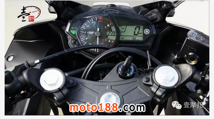 儀表部分轉(zhuǎn)速表采用大型指針顯示,紅線區(qū)則定在12500轉(zhuǎn)。右邊的液晶則是多功能顯示區(qū)。
