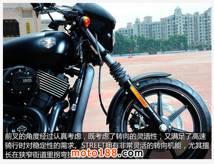 “城市駕駛”,是讓中國摩托車玩家尷尬不已的話題,STREET 750如果要再它最擅長的舞臺表現,并不容易,因為國內的大城市,基本上都已經對摩托車上路作出限制。好了,先不說這個掃興的話題,況且心中有堅持的車友總能想到出發的辦法。除了在哈雷的老家美國,城市,向來是歐日品牌摩托車的領地,駕駛一部笨重的哈雷摩托車擠進鬧市的車流,是一件痛苦不堪的事情。主打城市的STREET 750,216kg的重量,比底座板883還輕巧了30kg,32度的轉向頭轉向角,是哈雷家族中最大的,而規格為100 80/R17的前胎,同樣是哈雷家族中最纖瘦,最后加上充沛的低扭響應,讓新車具備絲毫不亞于歐日“城市街車”的機動性能和靈活性。