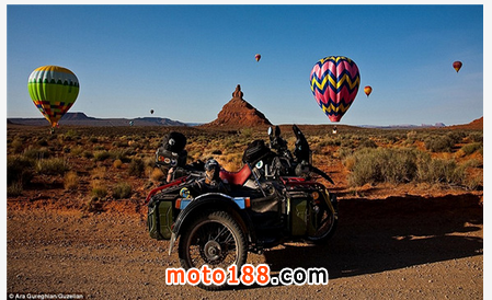 他們騎摩托車到過美國西部和中部的大部分地方,期間也碰到了暴風和大雪。