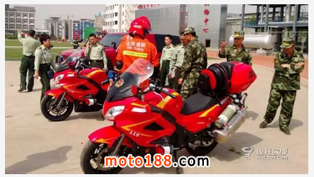 消防部門的相關負責人介紹說,這兩種消防摩托車將作為一個戰斗編程同時配備到中隊,可針對不同事故選擇性出動,具有靈活、快速的特點,將首批裝備到天安門消防處、故宮消防中隊和府右街消防中隊。