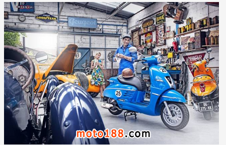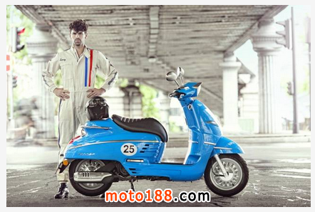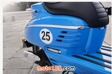 運動版車身顏色為運動韻味十足的愛琴海藍,配置單人運動型鞍座,車身有25號碼標(biāo)貼圖樣。25號是對標(biāo)致具有歷史紀(jì)念意義的冠軍戰(zhàn)車編號。