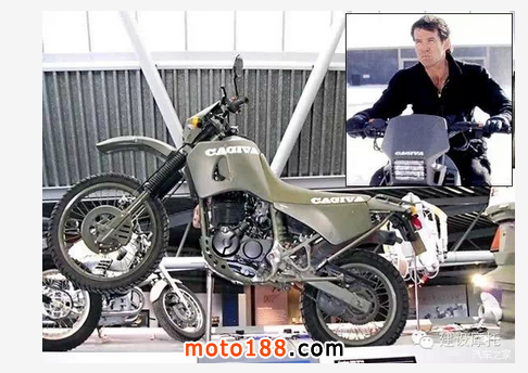 1980年,Cagiva 350s開始在法國軍隊(duì)中服役,參加過海灣戰(zhàn)爭(zhēng),是比較近代的一款軍用摩托車。不過,最讓這輛車出名的并不是戰(zhàn)場(chǎng)上的表現(xiàn),而是在各大電影中的出境。還記得007電影黃金眼中邦德駕駛的那輛越野摩托車么,就是這個(gè)了。