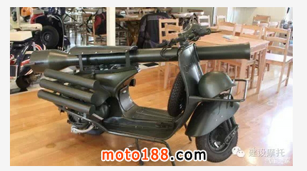 不過如果你幻想著一邊騎著羅馬假日中的性感踏板,一邊拿大炮轟坦克的話,那你就太天真了。這輛1950生產(chǎn)的軍事車輛主要目的是運(yùn)送機(jī)槍,武器送到了指定地點(diǎn)之后,要拆下來,架上支架才能夠使用。