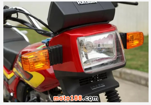 豪進新飛躍搭配方形大射燈,照度提高到16000cd以上,完全符合山路照明特點,射程更遠,確保夜間行駛安全。尾燈造型美觀,與整車尾罩渾然一體,紅色燈光十分醒目,轉向燈外觀與品質也得到全面提升。喇叭音效出眾,雙喇叭設計使整車安全系數進一步提高。