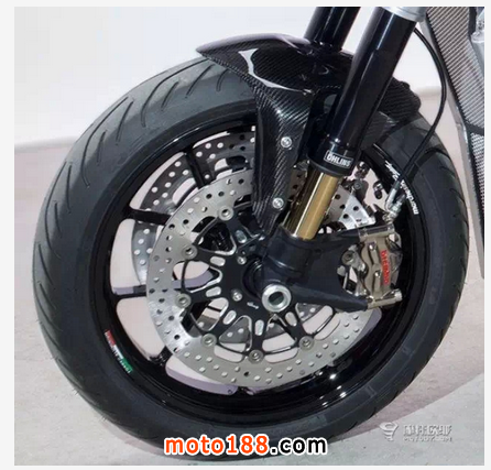 加滿油車重242公斤,考慮到車身安裝的巨大引擎,這個份量是非常了不起的實現。為了能夠達到這個了不起的輕量,車殼采用100%碳纖維,雙側排氣管采用Akrapovic定制4-into-2–into-1鈦制,車架采用Trellis編織式鉻鉗管車架,車身后部的副車架采用機械加工鋁合金副車架。
