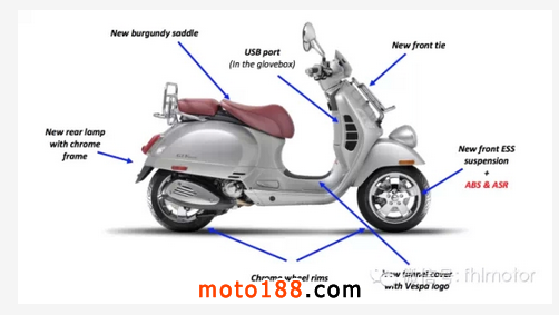 動力方面車架與發動機和GTS車系無異,USB接口插座同樣配備,而前減震采用全新的ESS懸掛系統,前后ABS&ASR系統也是標準配置。