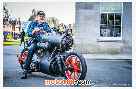 它的設(shè)計師名叫Colby Higgins,早在2011年的就設(shè)計出作品“Train Wreck Bike”概念摩托。這輛車展現(xiàn)了一種復(fù)古的魅力,主傳動是一個機(jī)軸可以通過偏心軸裝置轉(zhuǎn)動后輪,前半身裝了兩個減震器連著轉(zhuǎn)向輪,拖拽式結(jié)構(gòu),鼓式剎車,在機(jī)械原理和視覺上看都是模仿蒸汽火車。