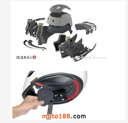 Hornet(大黃蜂)ADV配備一個可拆卸,易洗,并且可更換的3D全尺寸干燥內襯系統II。 SHOEI獨有的3D全尺寸干燥內襯系統II的襯墊是吸收消散汗水和濕氣的新型尼龍材料,但是其吸收、速干效果是傳統尼龍材料的兩倍,使其充分適應長途騎行。三維中心組件是三維形狀的組合,以配合騎車人不同的頭部輪廓,新增的耳墊也高度提升舒適性。此外,Hornet(大黃蜂)ADV的3D全尺寸干燥內襯系統II帶有記憶形狀功能,完美貼合面頰及頭部。