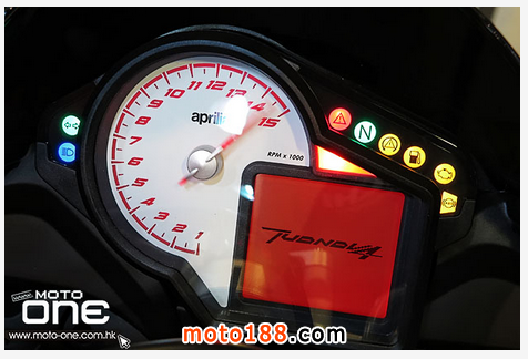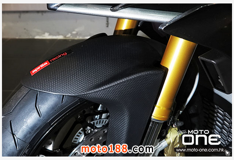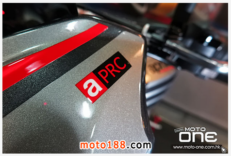 ●車頭上的APRC 貼紙,即是電子系統(Aprilia Performance Ride Control system),而該套電子系統包括Aprilia Wheelie Contro防起頭系統、Launch Control賽車式起步控制、Quick Shift快速電子轉檔及Traction Control循跡系統。